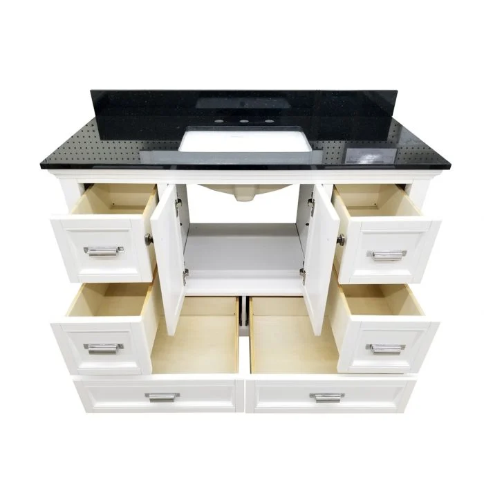 - Pre-drilled vanity and includes knobs and knobs