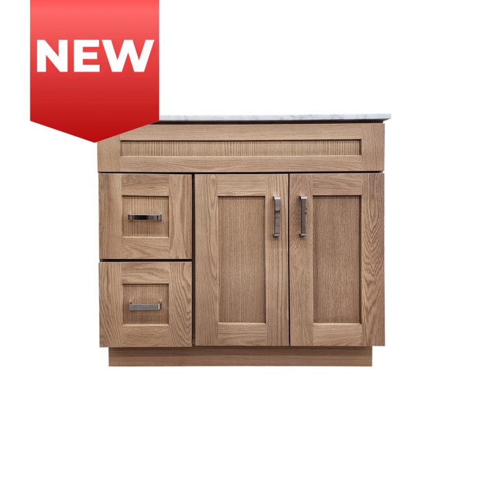 Complete your bathroom by adding an Evermore Shaker Oak vanity with a sink thatโs designed to fit into any bathroom design scheme. At Builders Surplus Kitchen & Bath Cabinets, we bring you a variety of options to choose from so you can create the perfect space to start your day, as well as a room to relax whenever you need to. See our quality bathroom vanities and feel the exceptional finish before you buy your new cabinets at our fully-stocked showroom.
