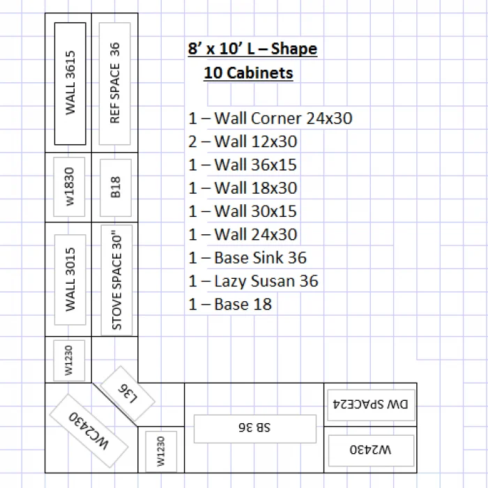 L Shape 8′ x 10′ (10 Cabinets) $1,814.00
