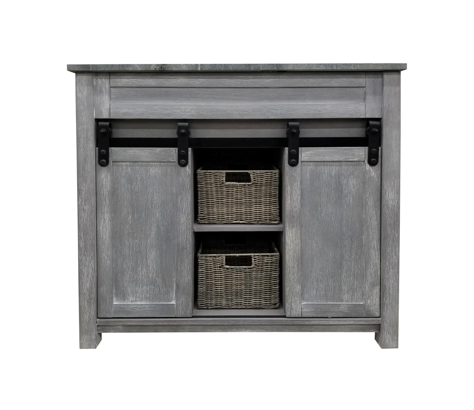 - Includes: Baskets and Barn-Style Sliding Door